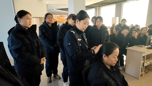 長(zhǎng)春保安集團(tuán)銀盾保安培訓(xùn)學(xué)校教官,結(jié)合安檢員崗位職責(zé),從行為禮儀、消防安全、應(yīng)急處突、隊(duì)列訓(xùn)練等方面嚴(yán)作風(fēng),強(qiáng)業(yè)務(wù),塑形象,從每一個(gè)細(xì)節(jié)入手,耐心講解示范,嚴(yán)抓細(xì)扣,切實(shí)規(guī)范隊(duì)伍秩序和能力,讓學(xué)員學(xué)有標(biāo)桿,練有標(biāo)準(zhǔn)。